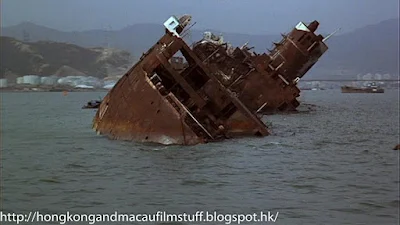 When I did a locations thread for this film on Gwulo a while ago, this was by far the most interesting one - mainly because no one knew where it had finally sunk. Anyway, the guys on there got their resourceful hats on, as always and finally nailed it as being a part of the sea off Stonecutters Island that now sits under a bit of reclaimed land.