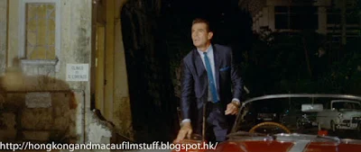 The problem I had in identifying this location is that the road shows a distinct large curve (see third picture) around the front of the property. This curve has gone and the road it leads to can actually be seen in this post. It's the small driveway that leads around the back of Kennedy Apartments. All the other buildings along this strip of Kennedy Road date back to before the film was made which only left #32 as the potential and it was also confirmed to me in a brief shot (taken from that last scene I just linked to) as the guys are running down the steps to escape arrest at their hotel. I didn't include the shot here (because at the time it didn't seem important) but it shows a car waiting foir them at the bottom of the steps and lo-and-behold in the background is the same crumbly wall also seen in picture 3 above.
