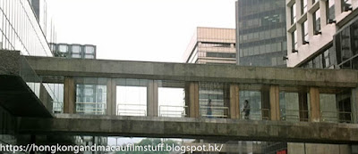 After Salina has been taken into protective custody as a witness, ka Kui is tasked with being her minder and has to follow her around in case she is attacked by her boss, although she is firmly of the opinion that she is in no danger. She goes shopping around East TST with Ka Kui in tow and we see a couple of spots including the link bridge that crosses above Mody Road connecting the (now) Royal Garden Hotel building with the Tsim Sha Tsui Centre. They then stop and have an argument at the southern end of the Urban Council Centenary Garden (a small separate section called Mody Road Garden), which is East TST's main open square. The bottom image shows the Regal Kowloon Hotel on the left and the East Ocean centre at the back right. The sloped walkway behind the two in the lower image is no longer there. It was replaced by a lift circa 2008.